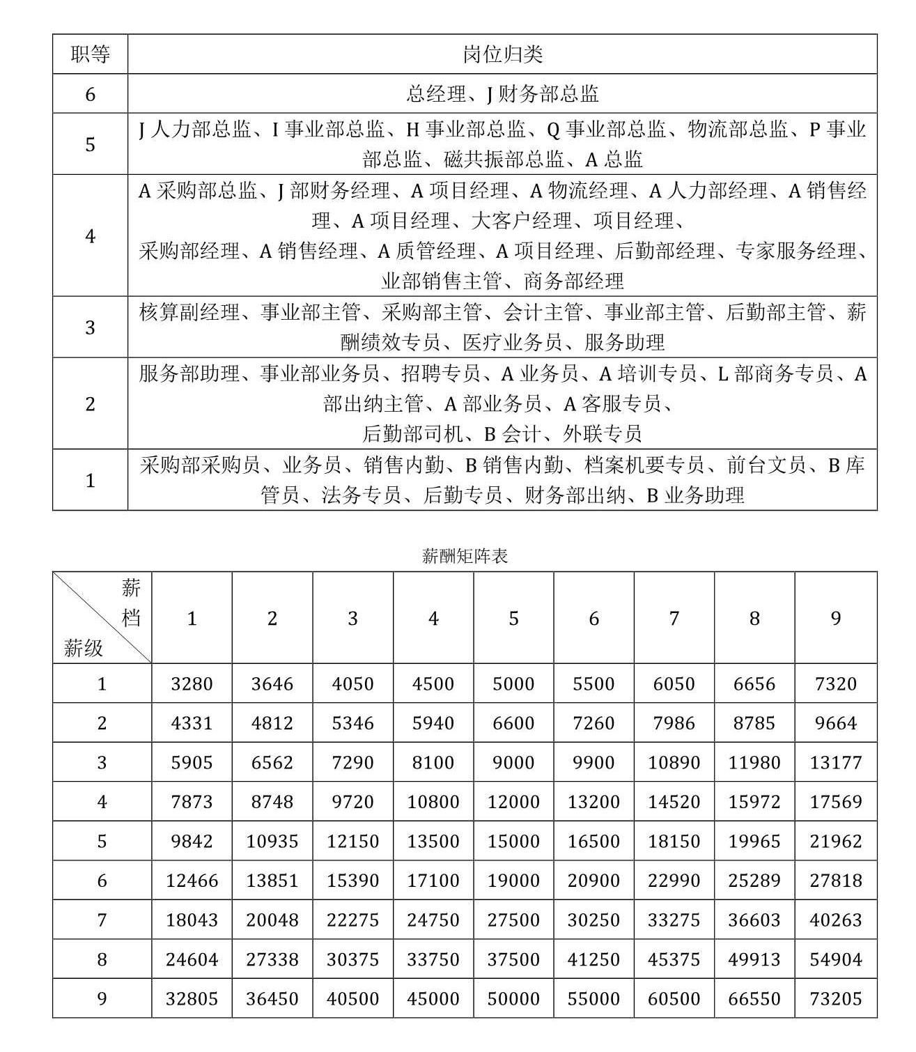 (1)本表基于公司职等设置与薪酬管理需要,构建起9级9档的薪酬矩阵;